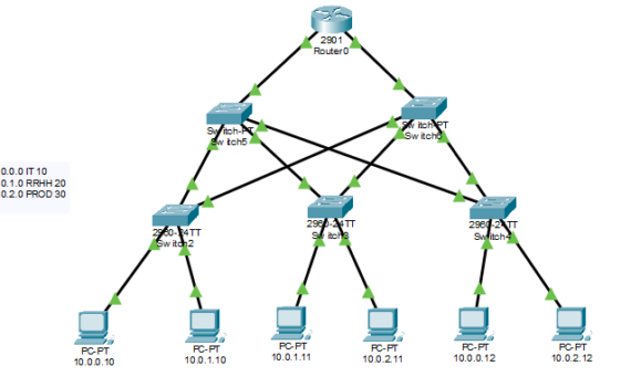I know that it is not possible to do exactly that, but I want to do the most similar thing to a school network to add more redundancy. For example, I have : Router. Distribution switches. Access switches. Many PCs (Those 6 are there to add realism). 3 VLAN.
