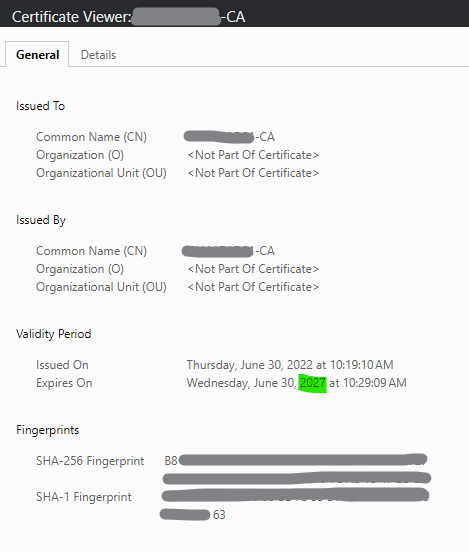 Reason I ask: the AD CA seems to be functioning well as domain-joining new computers is smooth with no issues, and existing domain services seem to be working OK. However any internally facing sites we have are flagged as not secure despite seemingly having valid AD CA certificates.