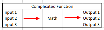 Instead of writing a formula in directly, you’re calling a function which contains the cells of a bunch of formulas that make up the function. The way I most easily can compare this to would be like a function file in Matlab where you give the function inputs when calling the function and then getting outputs.
