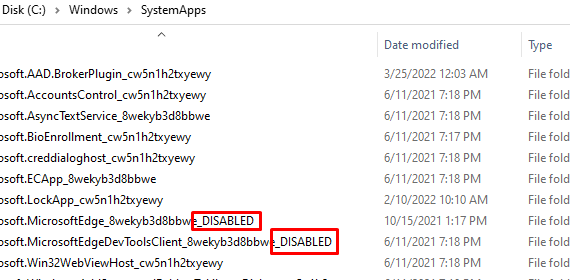 I’m following this to remove or disable Edge. I first terminated it in Task Manager. Then, I tried to rename the folders, as suggested, which didn’t work: I then tried to uninstall it, as suggested, which also didn’t work: Edge is still opening & operating like normal.