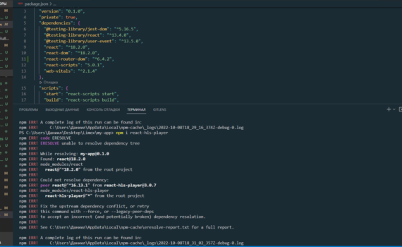 I need to install the react-hls-player npm package to start the m3u8 stream, but when I install it, it gives me this error.