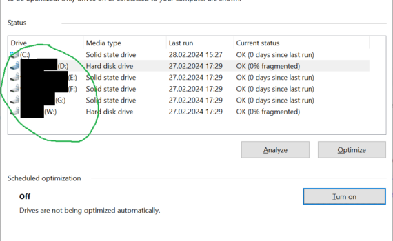 I want to setup scheduled drives optimization on Windows Server 2019 (defrag HDDs and TRIM SSDs). The Optimize Drives main window lists my drives properly. But when I want to select the drives that I want to optimize on a scheduled basis then this list is empty – see screenshots. […]