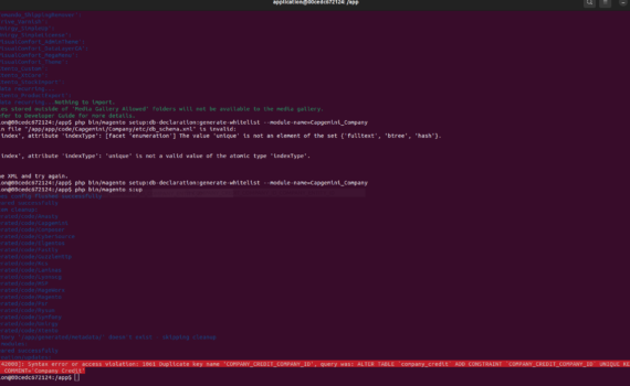 i trying to add unique key constraint to company_id column in company_credit table but i facing issue like duplicate key Syntax error or access violation: 1061 Duplicate key name ‘COMPANY_CREDIT_COMPANY_ID’, query was: ALTER TABLE company_credit ADD CONSTRAINT COMPANY_CREDIT_COMPANY_ID UNIQUE KEY (company_id), COMMENT=’Company Credit’ so basically this is my code in […]