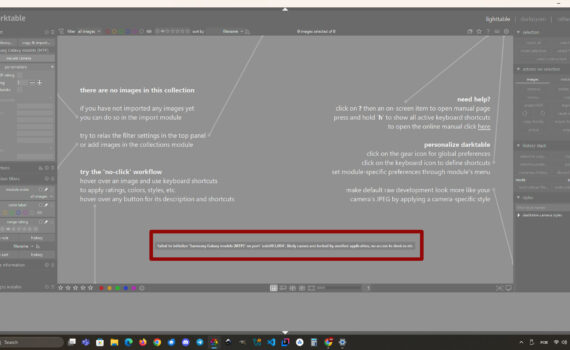 Darktable doesn’t mount my android phone on Windows 11 Enterprise. I get this error; see screenshot below: “failed to initialize Samsung Galaxy models (MTP) on port ‘usb:003,004’, likely causes are: locked by another application, no access to devices etc” Does anyone have some solution for it? OS: Windows 11 Enterprise […]