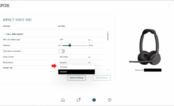 I am using the EPOS Connect desktop app to configure my Impact 1060T headphones. The settings menu has two options for Media Mode: Focused and Dynamic. The app doesn’t give a description of what each mode does or how it affects audio playback. What are the differences between the “Focused” […]