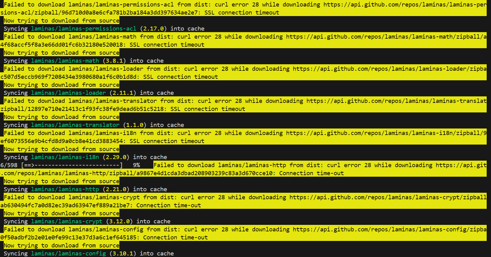 Errors: SSL connection Timeout error, Resolving timed out after 10000 milliseconds, Connection time-out Now trying to download from source.