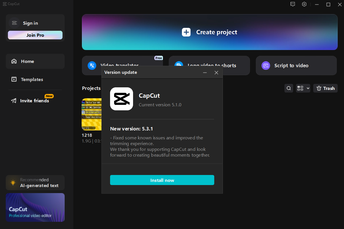 CapCut recently released an update which adds video watermarks unless you purchase a Pro subscription. I’ve decided to stay on CapCut 5.1.0 to avoid this, but I keep getting prompts to update every time I launch CapCut.