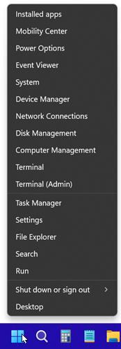 For years I was accustomed to the above solution where if you’re working with a bunch of applications open and you know you need to go to the Control Panel for something not available (or easy to access) in the Windows 11 ‘Settings’, you could just hit WinKey + X or right-click on your Start button and go right to it, which I thought was faster/easier then doing Win + R or S and typing ‘Control’ then Enter.