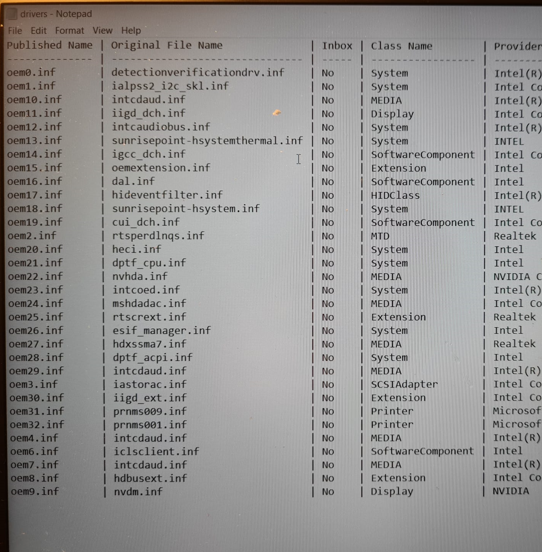 By the way, I got that table from running dism /online /get-drivers /format:table in windows. It does not work while in recovery. I get the error ‘ Deoployment Image Servicing and Management Tool. Error 87. get-drivers option is unknown’