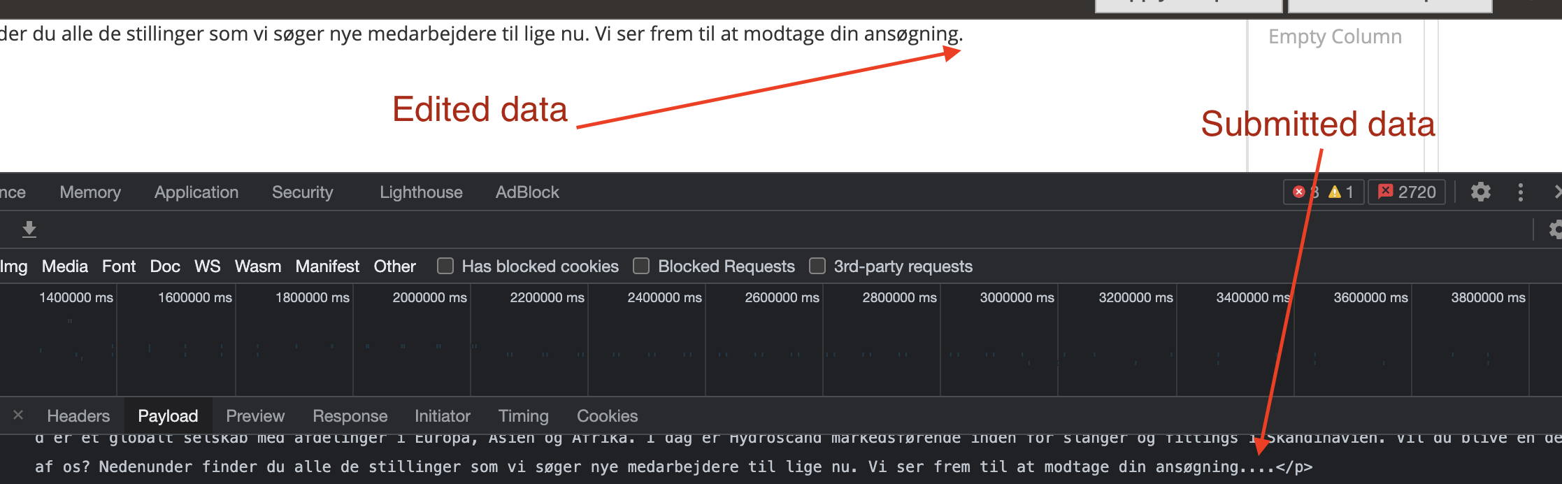 After editing content on some CMS pages via Page Builder edited content submits without any changes in payload: