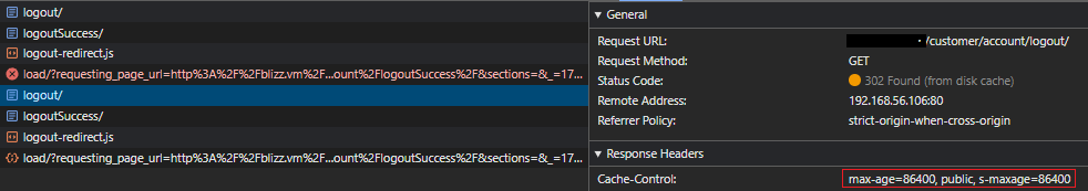 The customer/account/logout/ controller request, is getting cached.