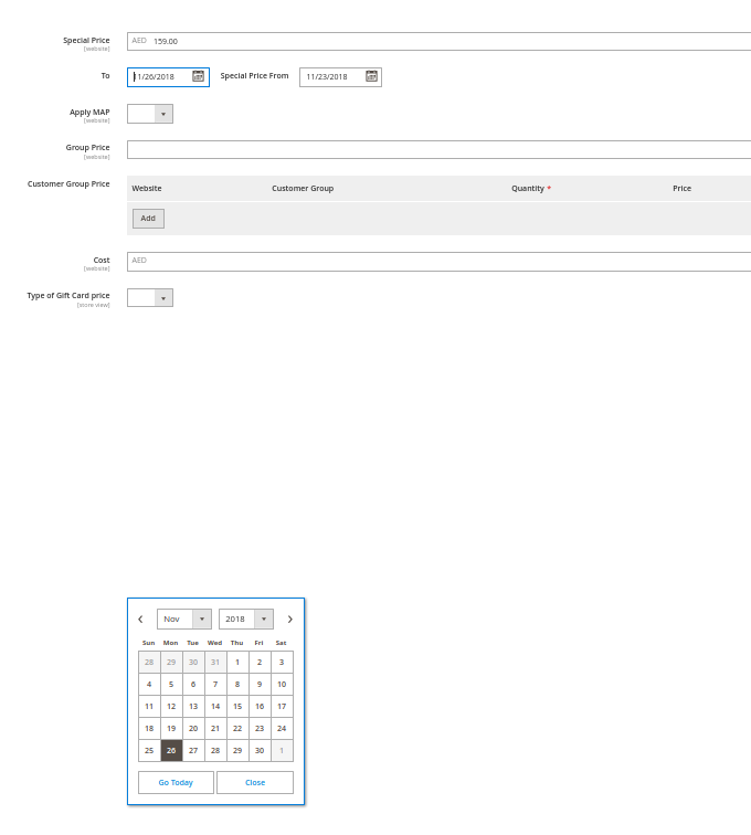 I recently upgraded Magento from version 2.4.6 to 2.4.7-p3. After the upgrade, I noticed that the ‘Special Price From’ and ‘Special Price To’ calender have been moved to the bottom of the product page.