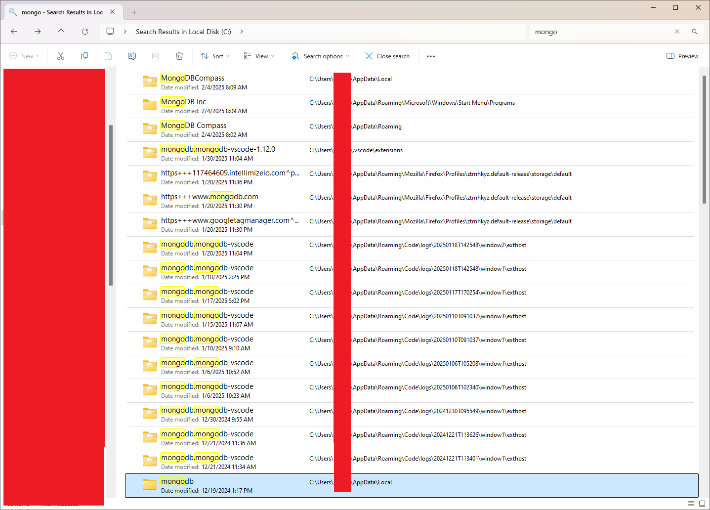 I don’t have a C:MongoDB folder and it’s not listed as a program that I can uninstall. I previously had MongoDB Compass installed, but I’ve since uninstalled it. Everything seems stuck due to some kind of partial/failed install.