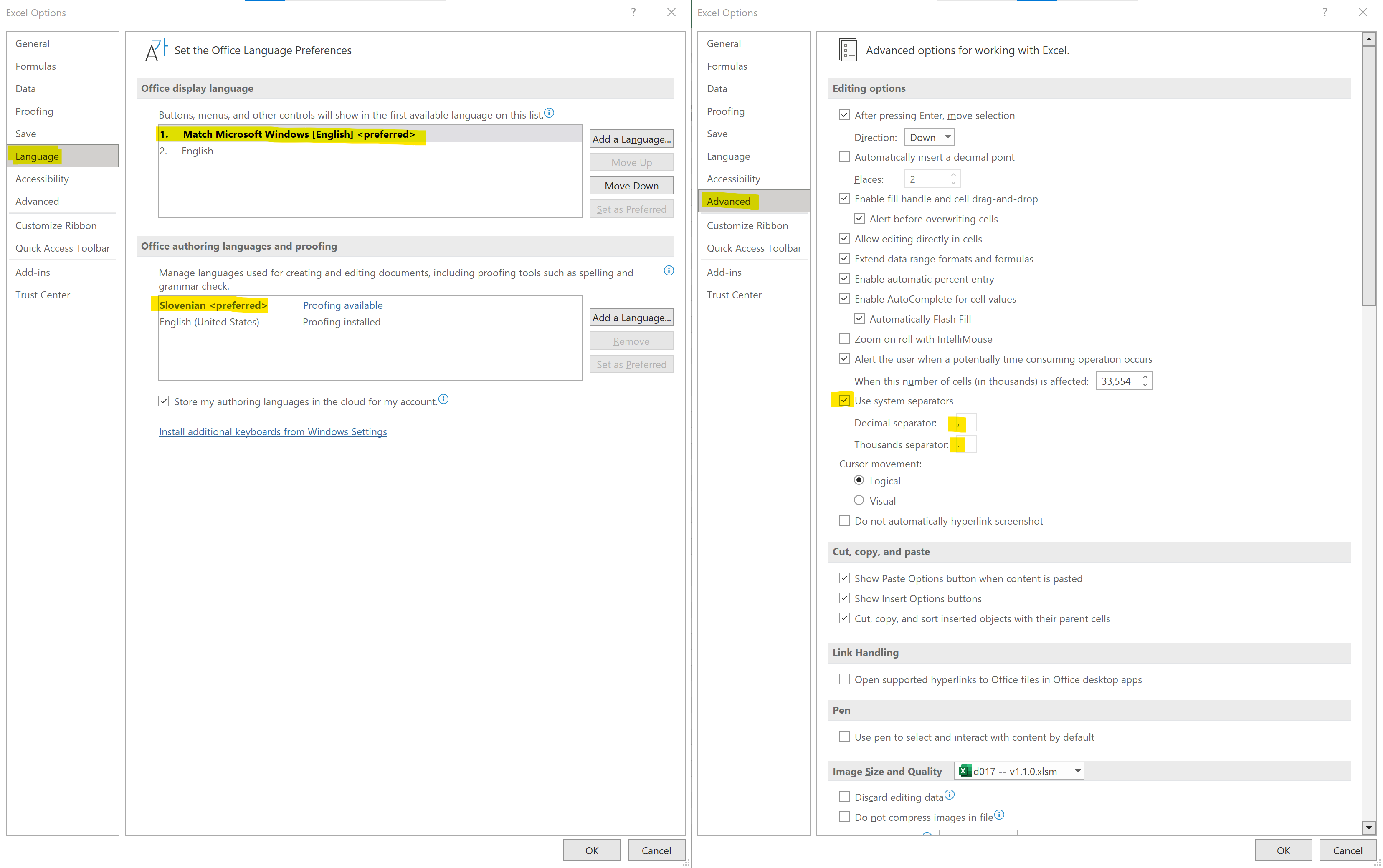 First one shows number 135.05 while the other shows 135.059.003.051.757,00. Both PC’s have the same settings which are like this: