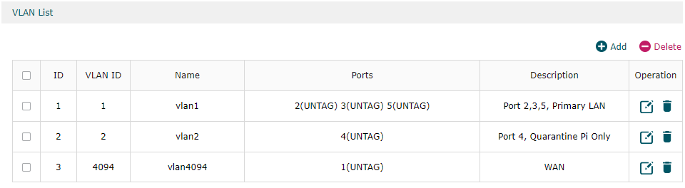 I have a secondary network from my ER605 router, this is used that the connected device, a raspberry pi, can be isolated. I use it to quarantine and scan incoming files from dubious sources (such as my in-laws perpetually malware afflicted computers). I need to be able to access the pi and exfiltrate scanned files to my primary network. I plan on using VNC for access and putting ok’d files directly on my QNAP NAS via SMB share.