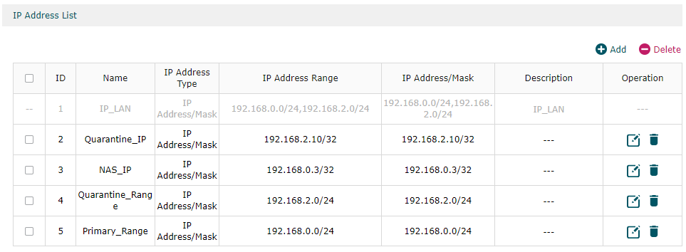 I have set up some ip ranges as well to describe areas of my network that I want to segment/grant access to: