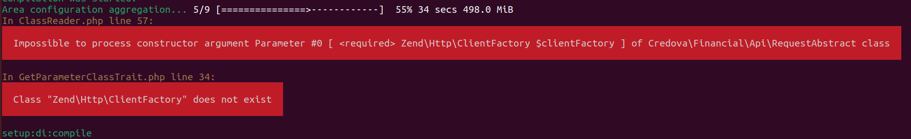 Impossible to process constructor argument Parameter #0 [ <required> ZendHttpClientFactory $clientFactory ] of CredovaFinancialApiRequestAbstract class